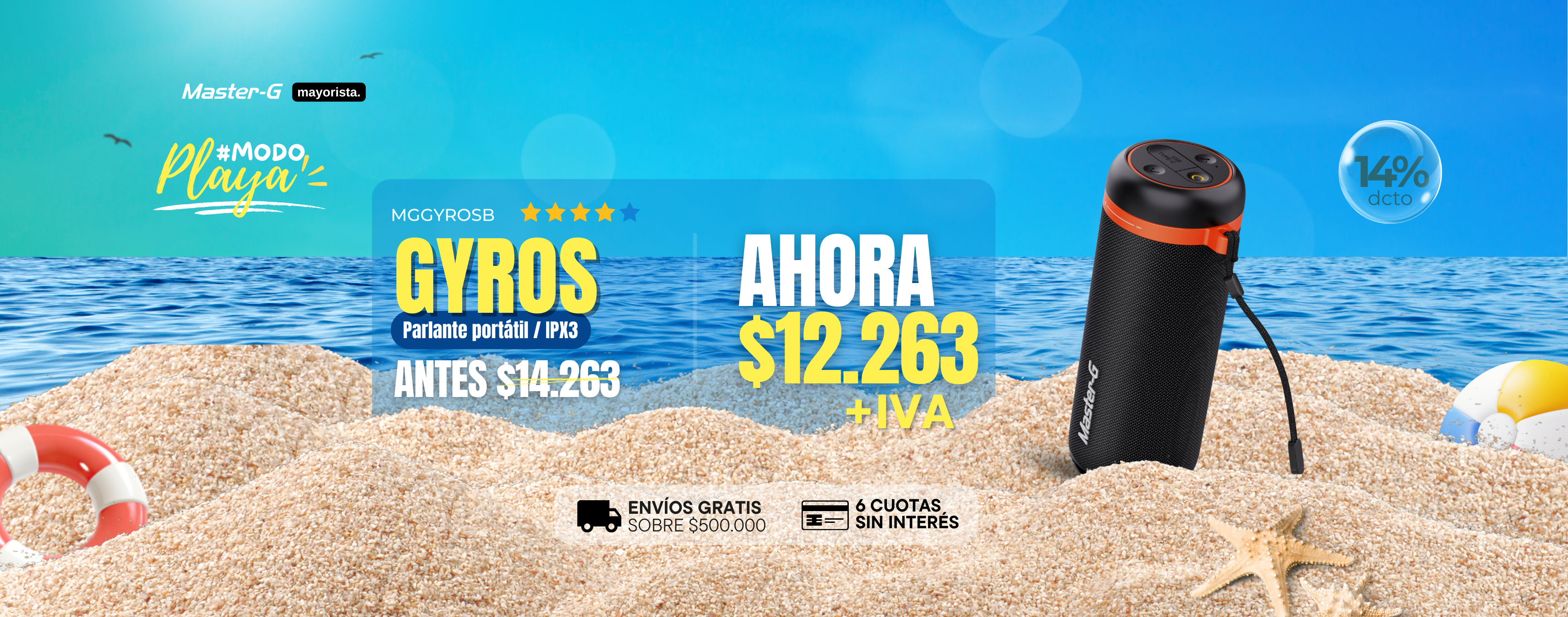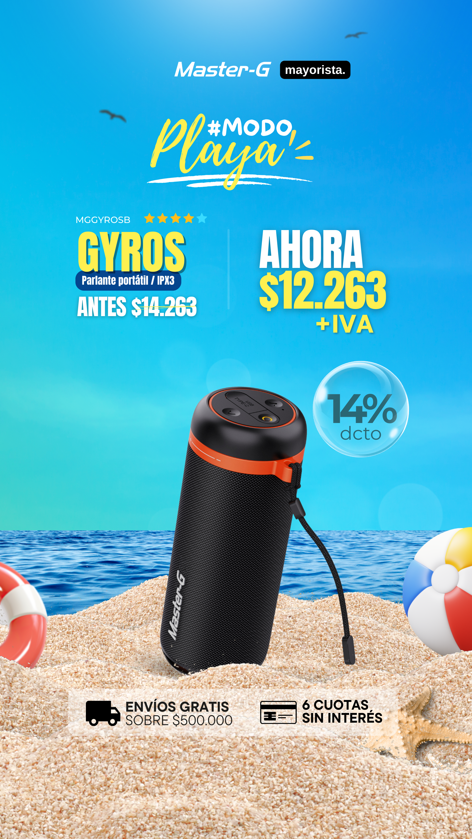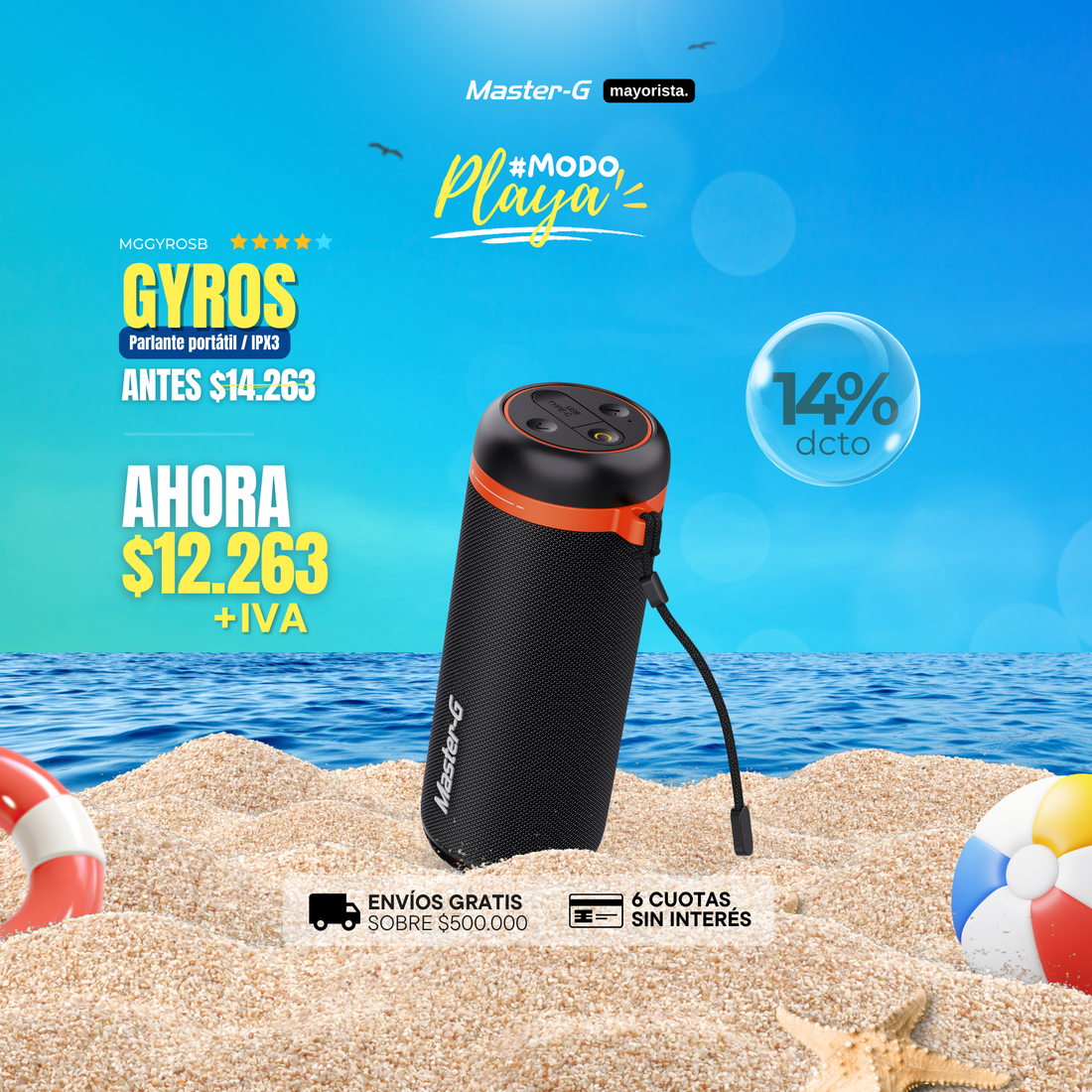 Parlante Bluetooth 5.4 Portátil 2" x2 TWS MGGYROSB Master-G